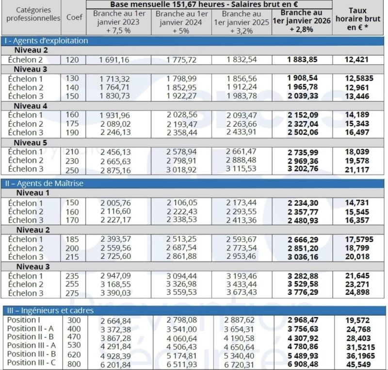 Depuis le 1er janvier, une nouvelle étape a été franchie dans la valorisation de nos métiers. Conformément aux derniers accords de branche, les salaires minima conventionnels bénéficient d'une hausse de +2,8 %.
